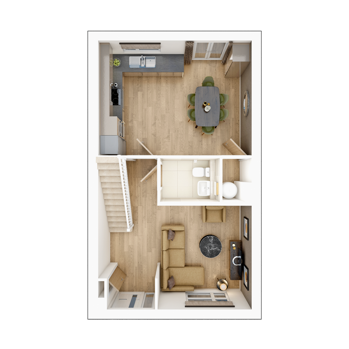 The ground floor of the Eynsford features an open-plan kitchen diner to the rear, with double doors that open on to the garden. The cosy lounge is located to the front of the home.