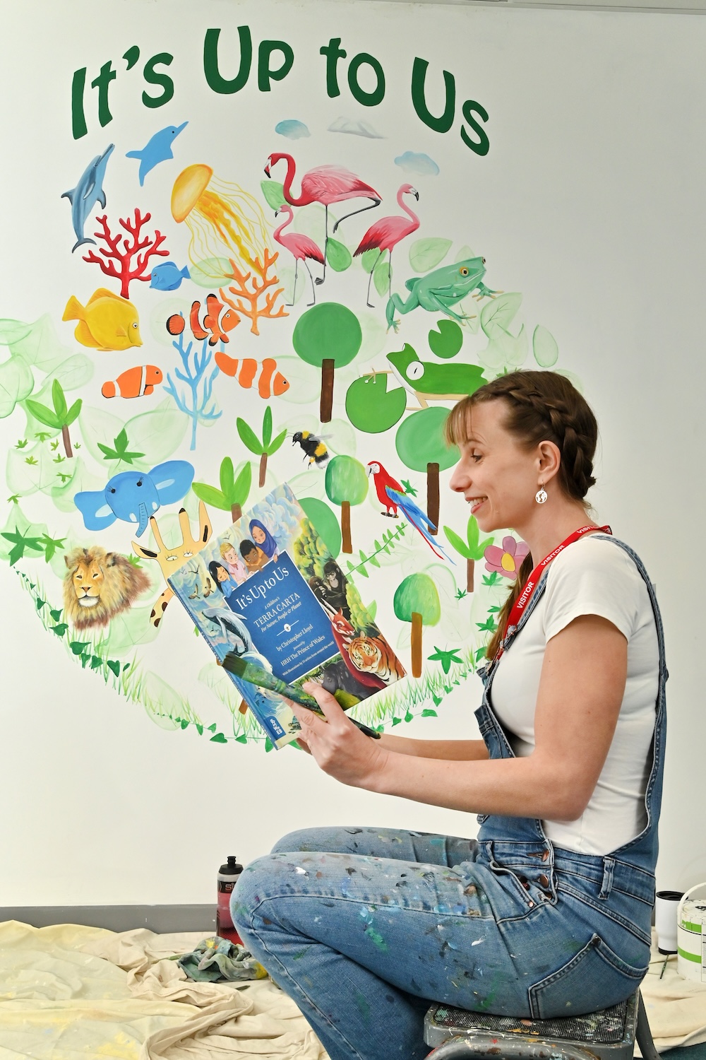 Plymouth-based artist Mrs Murals created the mural, transforming the children's vision into a permanent masterpiece that now takes pride of place in the school's library.