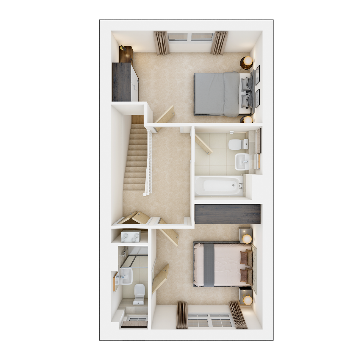 Both bedroom upstairs are doubles and have ample space for storage, with the main bedroom having its own en-suite.
