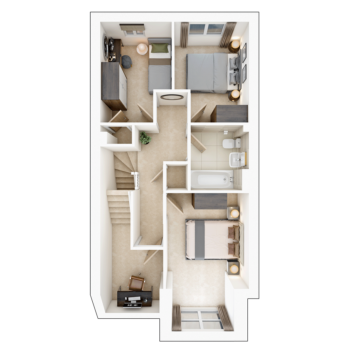 The first floor features two double bedrooms as well as a well proportioned single bedroom, which could be used as a home office. A main bathroom sits off the middle of the landing.